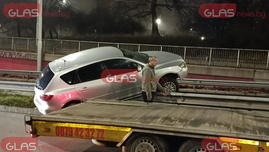 Инцидент затрудни движението на един от най-натоварените пътни възли в Пловдив тази вечер. Лек автомобил е катастрофирал на Коматевския възел в посока гарата, видя Glasnews.bg.