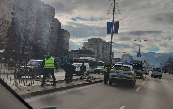 Кола се вряза в разделителните ограждения на булевард в София и се озова в насрещното.