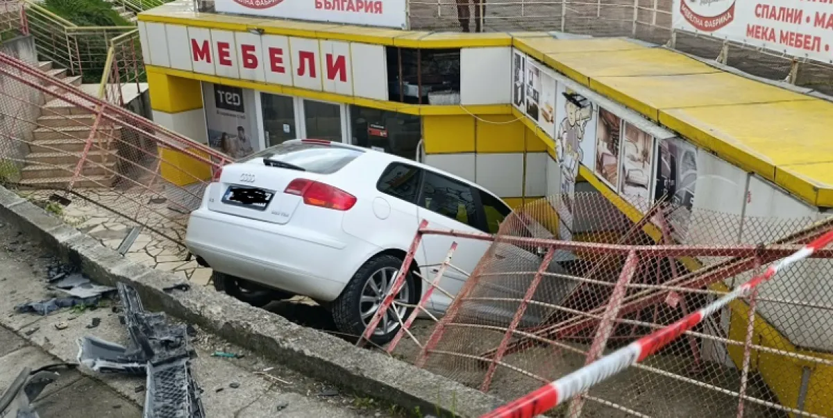 Съобщено е, че са се ударили два автомобила. Единият се врязал в магазин.