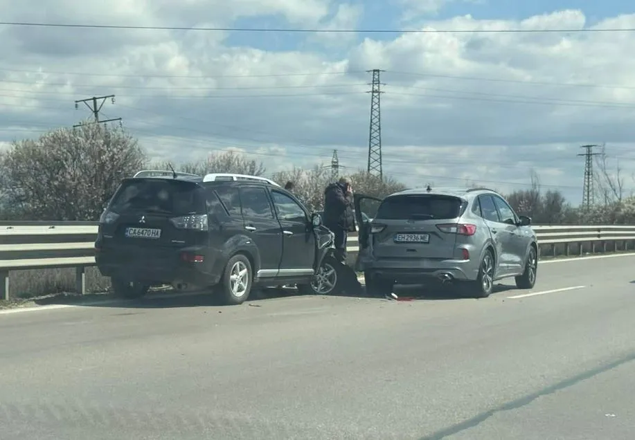 Двe коли са се ударили в изпреварващата лента, преди село Лозен в посока Пловдив.