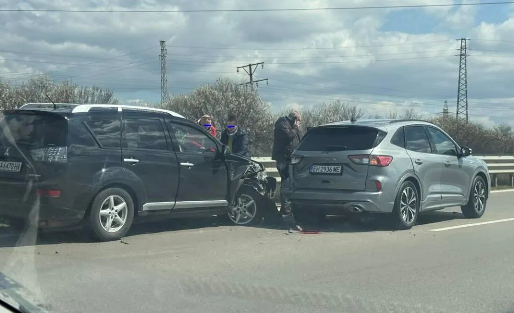 Двe коли са се ударили в изпреварващата лента, преди село Лозен в посока Пловдив.
