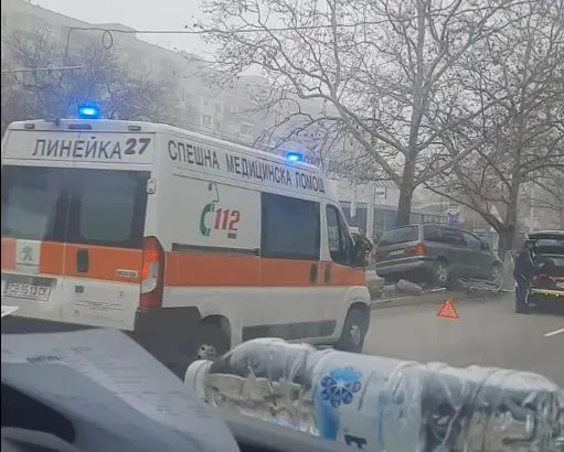 Лек автомобил е катастрофирал на права отсечка на бул. „Липник“. Машината се е качила върху разделителния остров между дърветата, като е помела разделителната метална ограда.