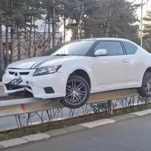 Странен инцидент: Кола "кацна" върху мантинела СНИМКИ
