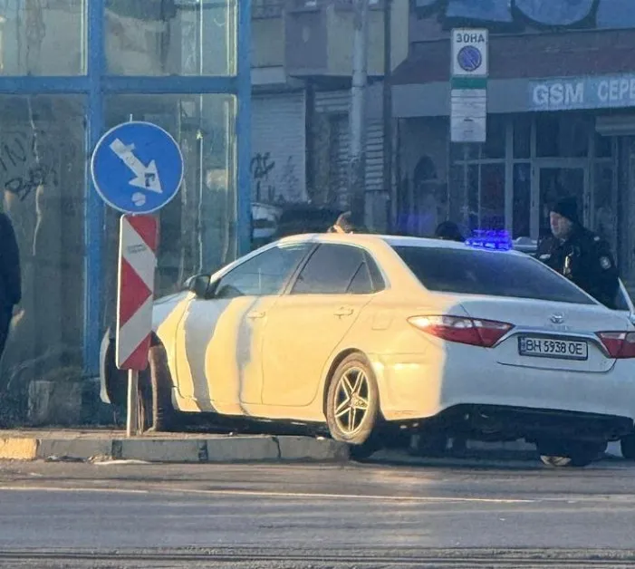 Бялото возило някак се е озовало върху бордюра. Не се виждат сериозни щети, а към момента няма данни за пострадали.