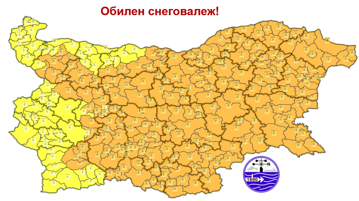 Още сутринта от югозапад ще започнат валежи от сняг, които до вечерта ще обхванат цялата страна и в повечето райони ще са интензивни и значителни по количество. Ще се образува снежна покривка - в Южна България достигаща 15-20 cм, а в Северна – до 10-15 cм.