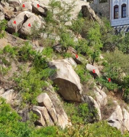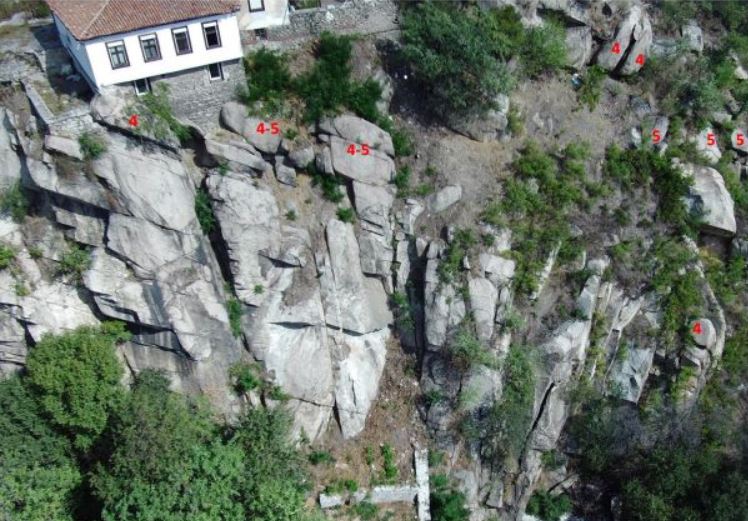 Установени са повече от 10 нестабилни скални блока с обеми до 15- 25 m 3 , чиято маса на някои от тях може да надхвърли 60 тона. Броят им може да се окаже по-голям, ако се направи детайлно картиране на участъка непосредствено над откоса.