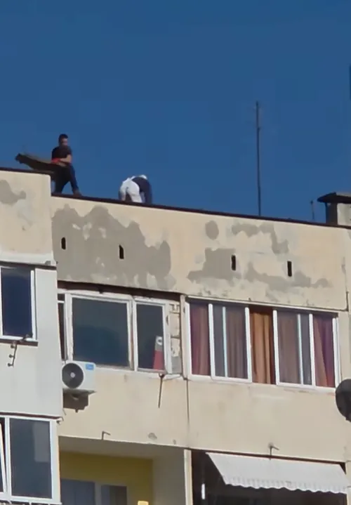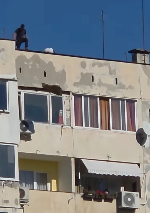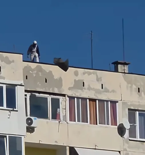 Жители на столичния квартал „Дружба“ станаха свидетели на опасна и безотговорна постъпка – работници бяха заснети как изхвърлят предмети директно от покрива на жилищен блок.