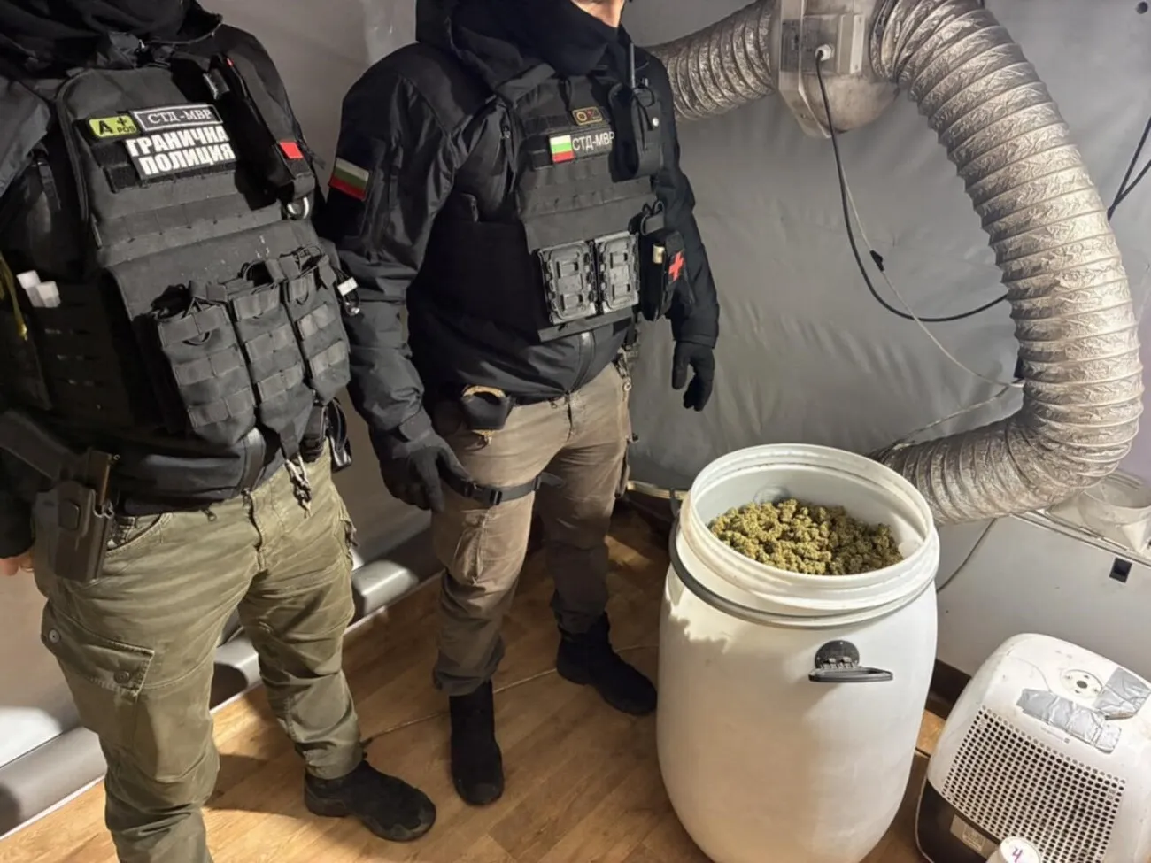 Извършена е проверка на територията на село Макоцево, община Горна Малина в жилищна постройка, собственост на български гражданин. В хода на проверката граничните полицаи са установили 30 кг сух канабис, 184 саксии с разсад, както и оборудвани помещения с технически средства за отглеждане на наркокултурата – изградени вентилационни и климатични системи, сушилня, монтирани осветителни тела, въздуховоди, филтри, торове, везни и препарати.