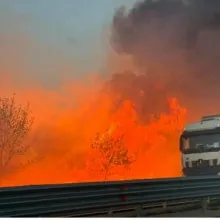 Огнен кошмар на АМ Тракия! Пламъците са на метри от аутобана СНИМКА
