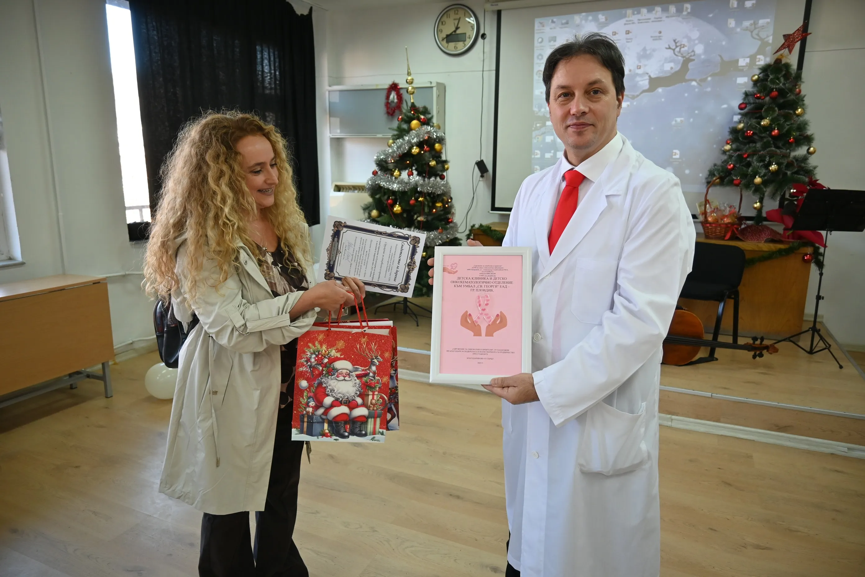 През изминалата година фирми, училища, детски градини, сдружения и множество дарители превърнаха обикновените дни в празници. Благодарение на тяхната щедрост бяха подпомогнати нуждите на клиниката, осигурени бяха необходима апаратура, оборудване и подкрепа за лечението и престоя на децата. Сред дарителите се открояват училищата: ОУ „Васил Левски“, ОУ „Душо Хаджидеков“, ОбУ ,,Пенчо Р. Славейков“, СУ „Свети Седмочисленици“, СУ „Княз Александър I“, НУ „Васил Левски“ – Пазарджик, също така студенти и служители от МУ – Пловдив, както и десетки физически лица. Празникът бе озарен от изпълненията на Вокална група „Бамбини“ към ЦПЛР–ОДК Пловдив, Школата по художествена гимнастика към ЦПЛР–ОДК, деца от НУМТИ „Добрин Петков“ и млади таланти, които представиха музикални и поетични изпълнения. Тяхната енергия и светлина създадоха атмосфера на надежда и солидарност. Началникът на Клиниката по педиатрия доц. д-р Иван Янков направи равносметка на изминалата година и връчи грамоти на 27-те дарители, подкрепили каузата на клиниката.