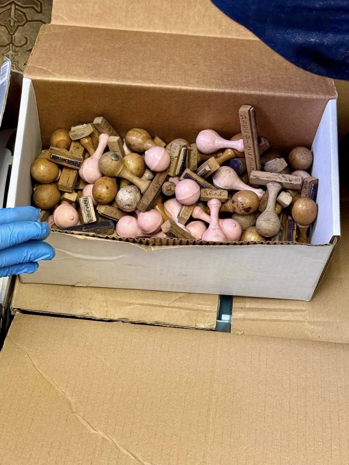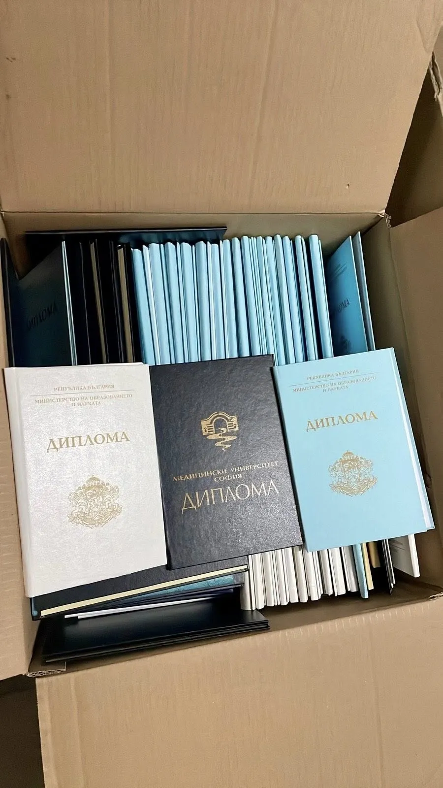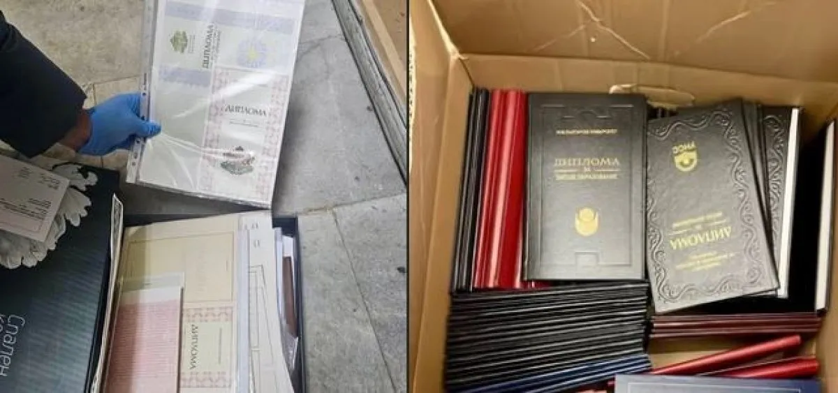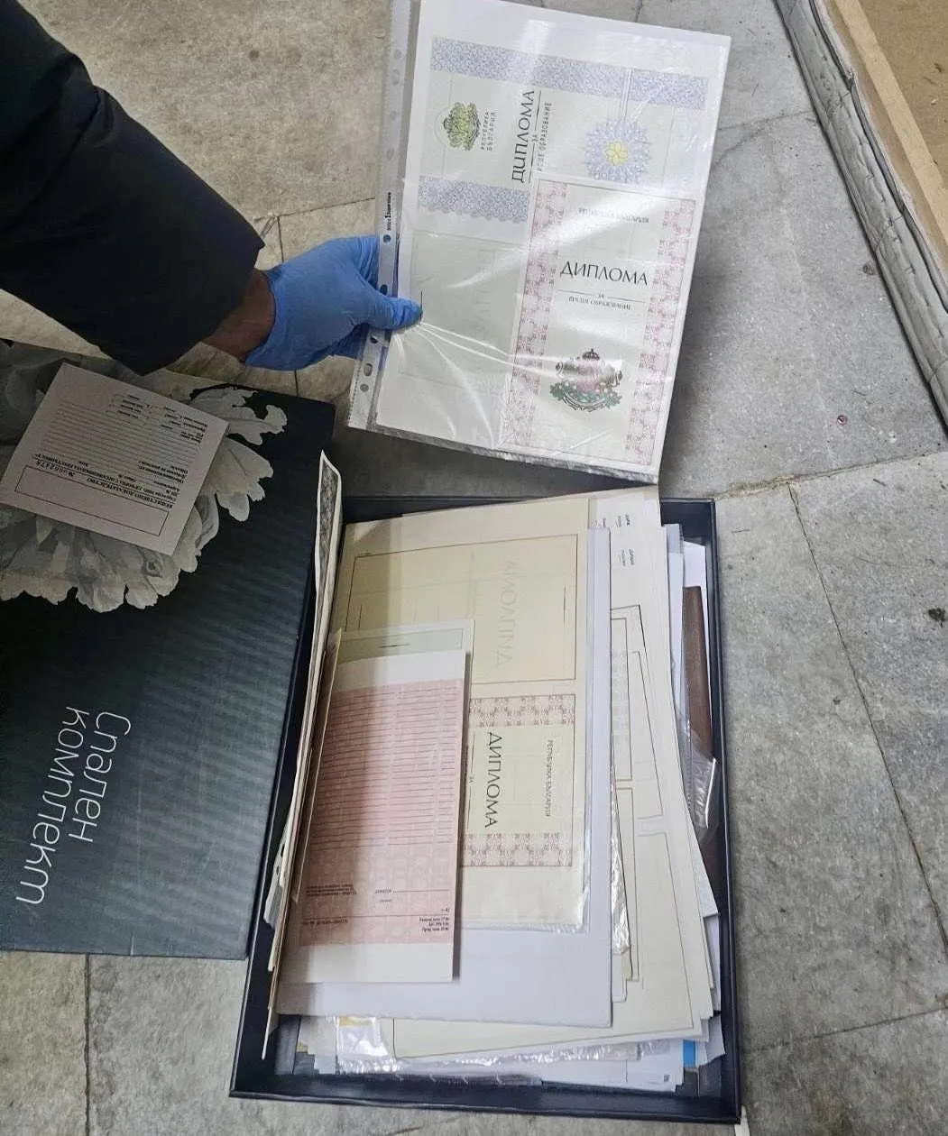 При извършените действия по разследването са открити множество празни бланки, заготовки, печати на различни университети, училища, нотариуси и частни фирми, както и материали и специализирана техника за дигитален печат.