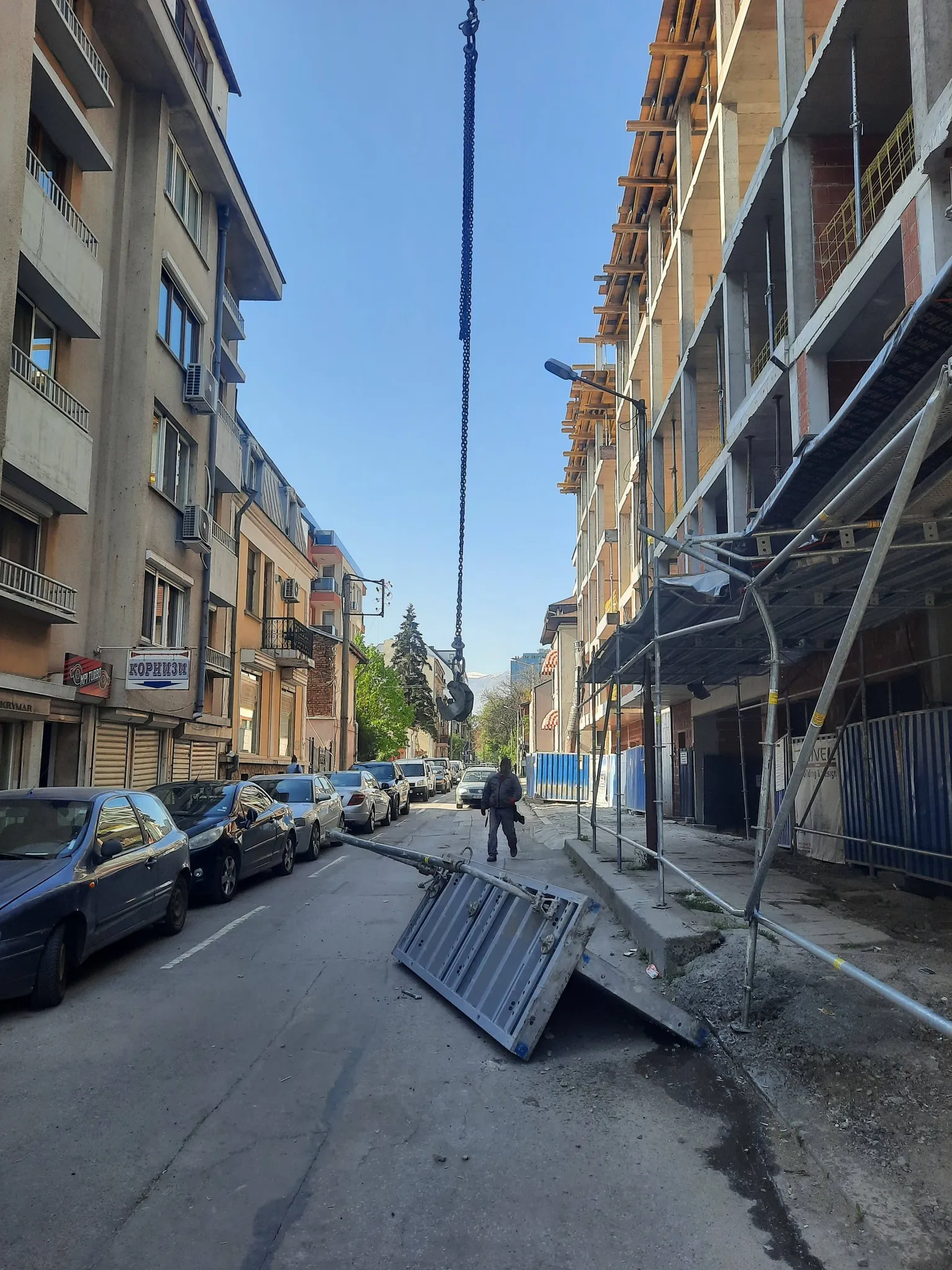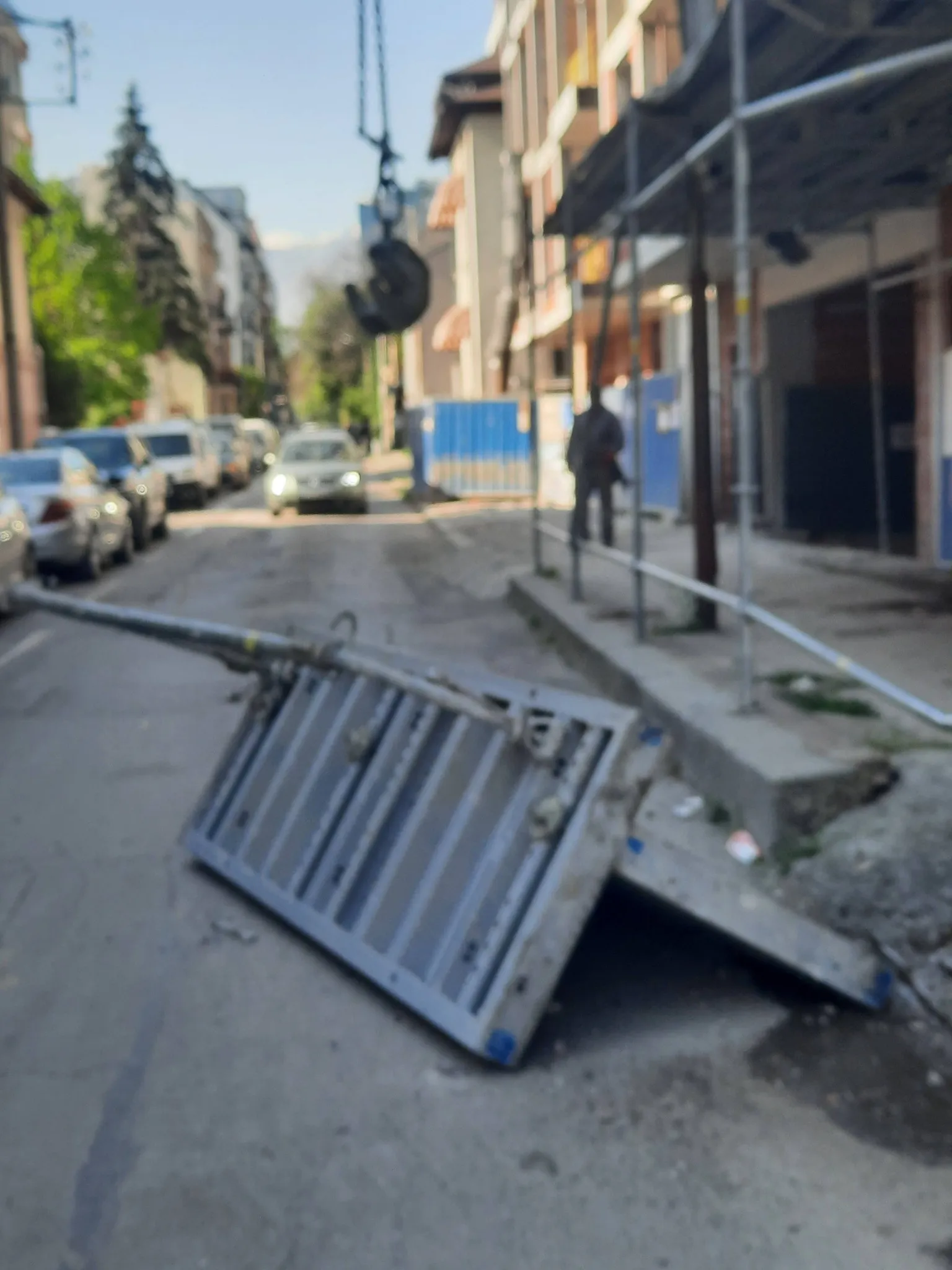 Падна кофраж от 5-ти етаж на пътното платно на ул. „Отец Паисий“ до ъгъла с „Цар Симеон“.