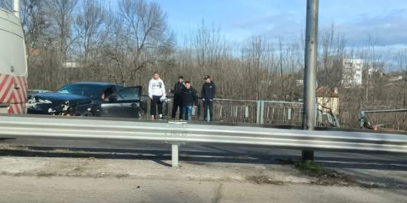 По първоначална информация водачът е самокатастрофирал, като се е ударил в железния парапет.