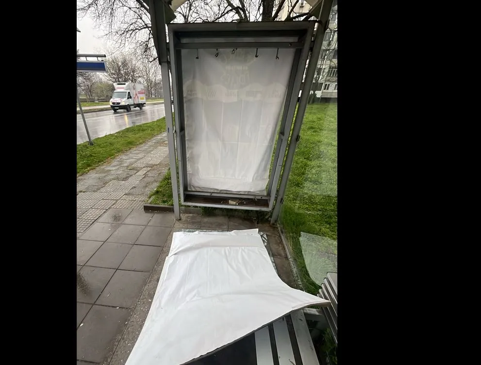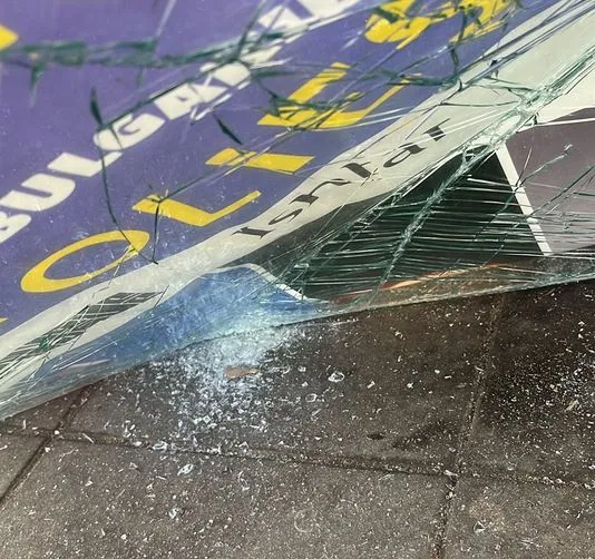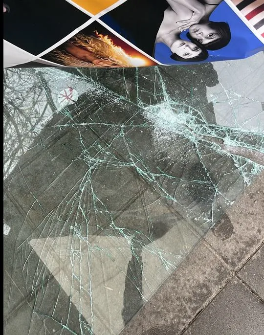 Дамата споделя и кадри, на които се вижда рухнала част от стъклената стена на съоръжението, която се използва за поставяне на плакати.