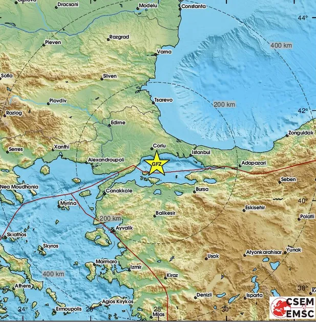 Земетресение с магнитуд 5.0 по Рихтер разлюля Западна Турция, като трусът е бил усетен и у нас. По данни на Европейско-средиземноморския сеизмологичен център (EMSC) земният трус е регистриран в 14:55 ч. българско време. Епицентърът е на 42 км югоизточно от Текирдаг и на 21 км южно от град Мармара Ереглиси, с дълбочина около 14 км.
