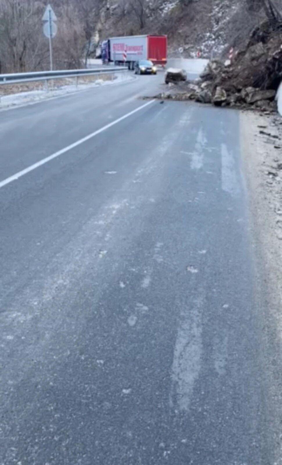 Сигнал за срутище в участъка на км 92 от път III 866 Кричим-Девин е получен малко след полунощ. Екип на РУ Стамболийски регулира движението в участъка, които се осъществява само в една от лентите.