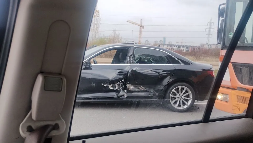 Произшествието е в посока „Бояна“. Две леки коли са със сериозни материални щети, край тях има спрян и камион. Лявата страна на черно „Ауди“ носи следи от страничен удар, счупено е и страничното стъкло.