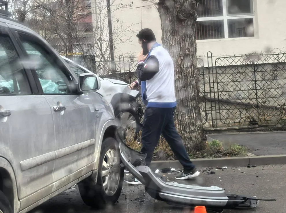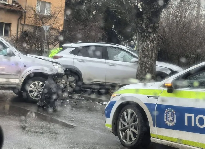 "Хонда" и "Хюндай" са се ударили на улица "Народно хоро". Автомобилите имат следи от челен удар по предниците си, като единият е изхвърчал на тротоара.