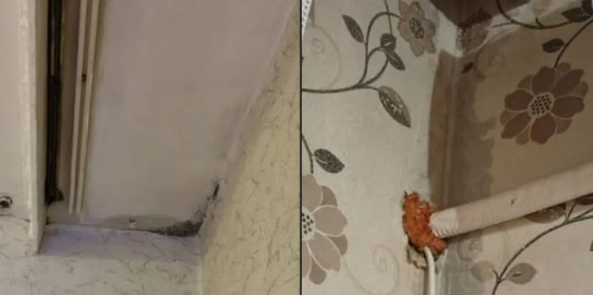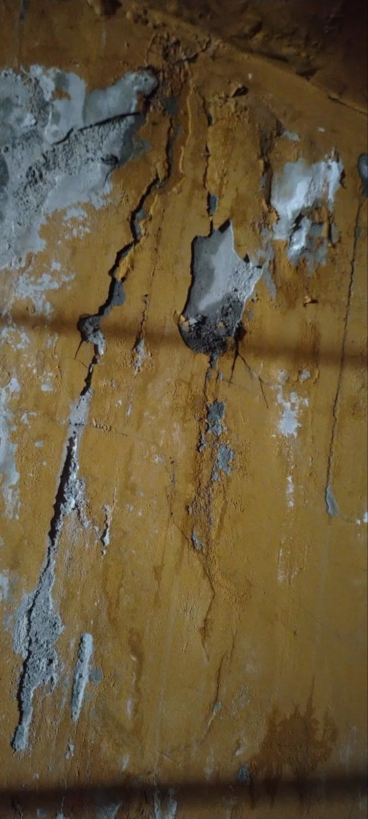 Разпространените снимки показват сериозни поражения. На част от кадрите се вижда лющеща се и паднала мазилка, разкриваща слоевете под нея, както и напукани и овлажнени повърхности.