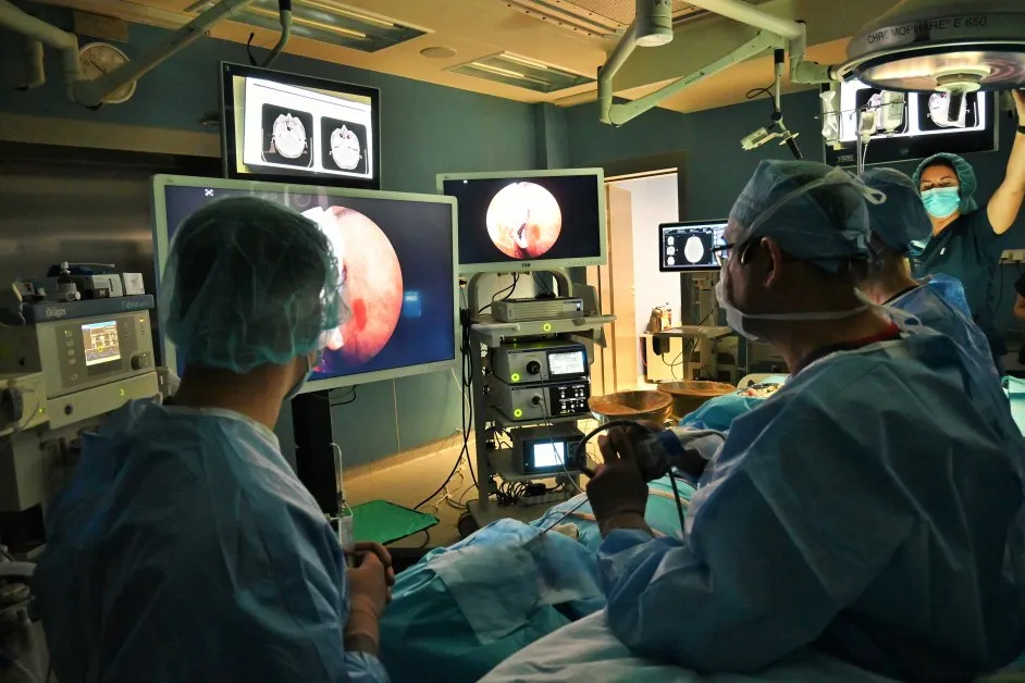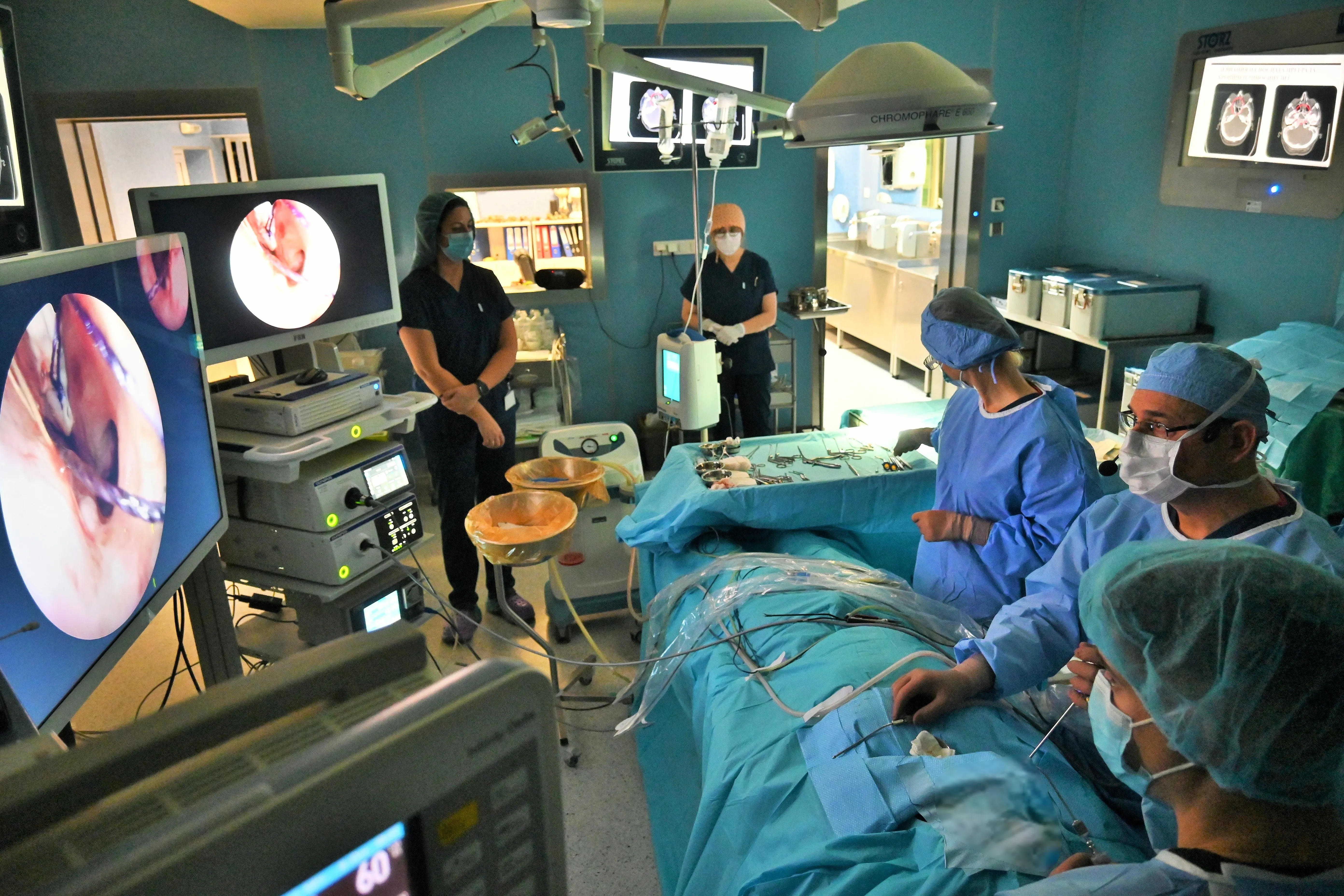 В рамките на курса участниците имаха възможност да наблюдават в реално време извършването на сложни ендоназални хирургични интервенции при хроничен риносинуит с назална полипоза, с изкривяване на носната преграда и операция на напреднал злокачествен туморен процес, обхващащ основата на черепа. Проследяването на тези процедури в реално време позволи на младите специалисти да видят практически решения в критични и комплексни хирургични ситуации, проследявайки целия оперативен процес – от предварителното обсъждане на клиничните случаи до финалните етапи на хирургичната работа. Този подход даде възможност младите лекари да се запознаят отблизо с детайлите на съвременната ендоскопска хирургия, да задават въпроси и да участват в дискусии, които активно подпомагат тяхното професионално развитие.