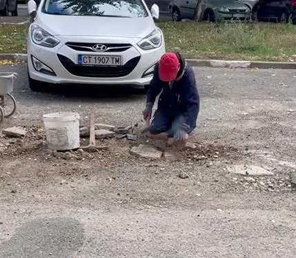 Казанлъчанин впечатли своите съграждани с безкористната си добрина. Мъжът запретнал ръкави и се заел да запълни дупка, зееща на паркинг в града. За безвъзмездния му труд споделя Станислава Палашева, която разпространи кадри, запечатали усилния му труд. Въоръжен със сечива и стари плочи, застаналият на колене мъж запълва дълбокия кратер.