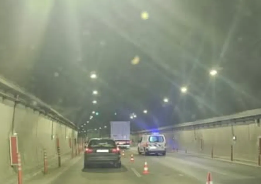 По-рано днес движението в тунела се осъществяваше в изпреварващата лента поради аварирал камион.