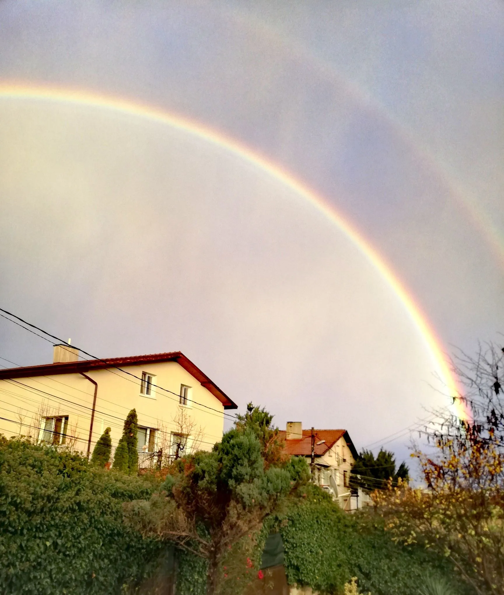 Най-обсъжданото явление обаче не беше светлината, а двойните дъги, заснети както над София, така и над Костинброд. Двойната дъга се появява, когато светлината се пречупва не един, а два пъти в капките дъжд.