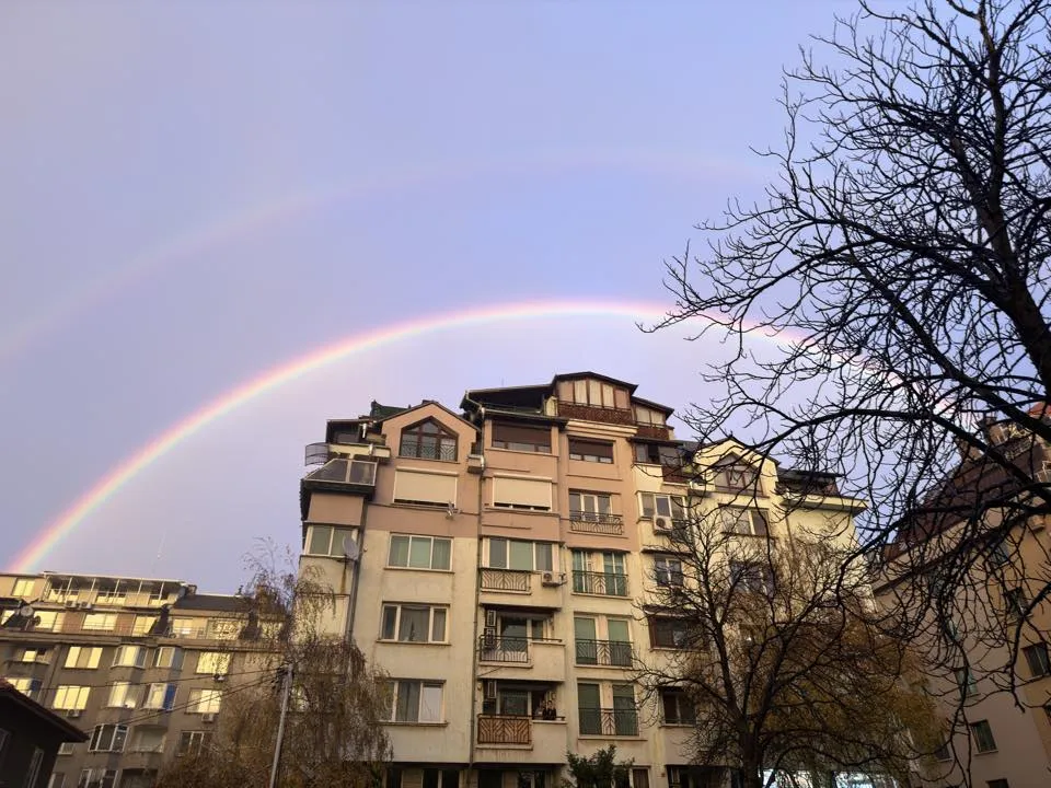 Тази вечер небето над София и околните градове се превърна в сцена на природно шоу, което трудно може да бъде описано с думи. Стотици жители на столицата и Костинброд заляха социалните мрежи със снимки, на които се виждат огнени, почти горчичени небеса, последвани от внезапна смяна към дълбоки мастилени облаци, и накрая – двойни дъги, ярки като нарисувани.