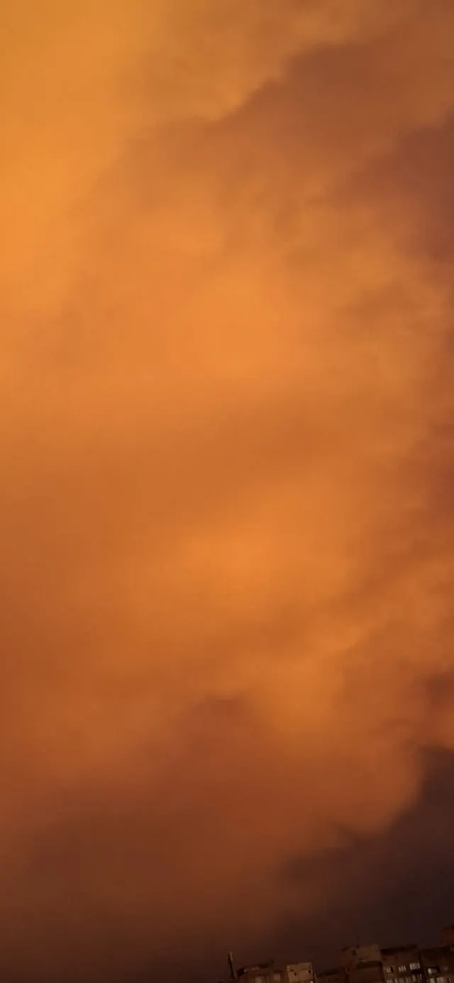 Огненият, златисто-оранжев оттенък, който хората наблюдаваха, се дължи на комбинация от: ниско залязващо слънце, гъсти дъждовни облаци и висока влажност във въздуха, която разсейва светлината.