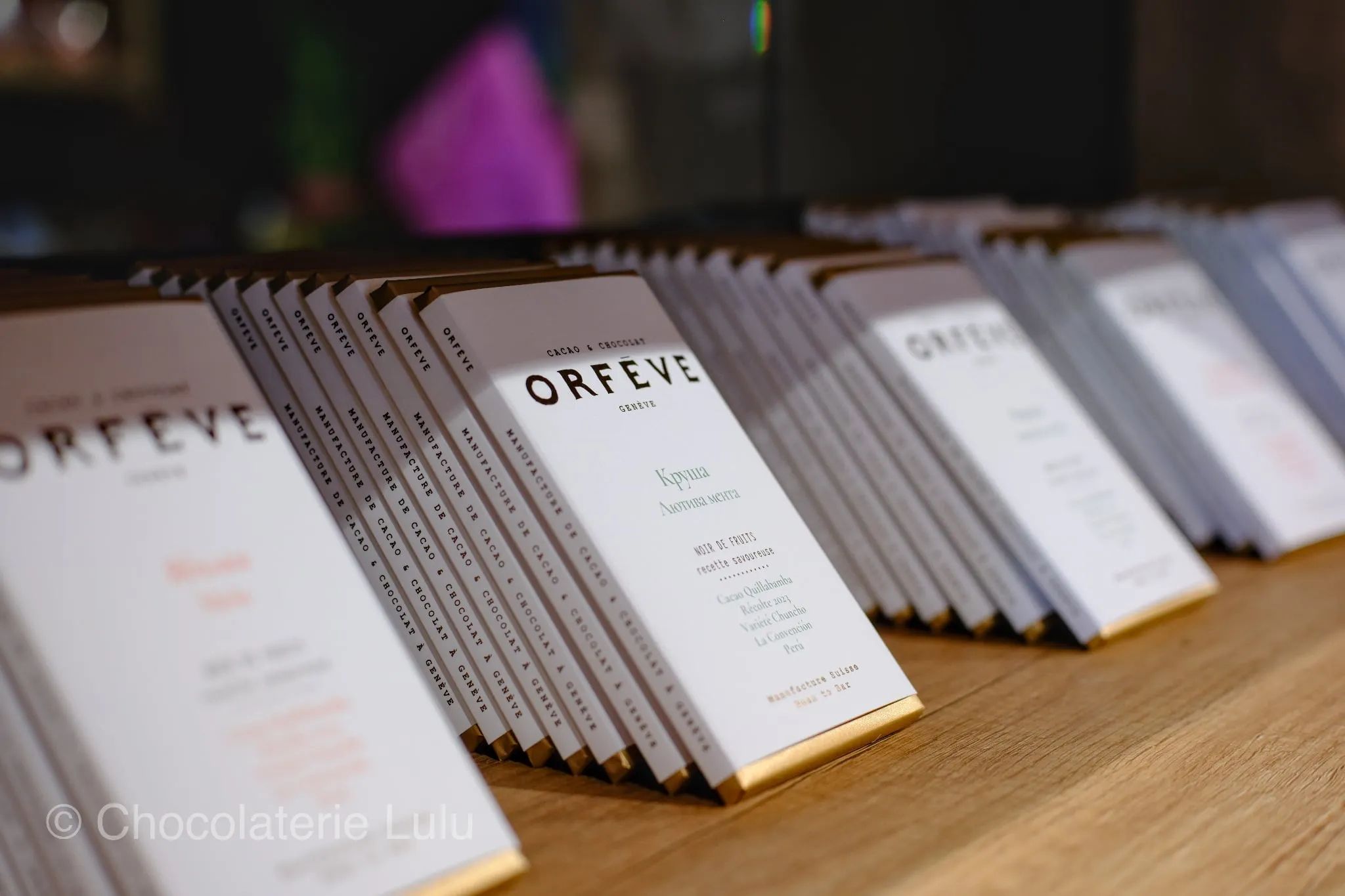 В „ЛюЛю“ няма масови продукти. Всичко е подбрано ръчно и идва от малки швейцарски производители, за които шоколадът е занаят, а не индустрия.