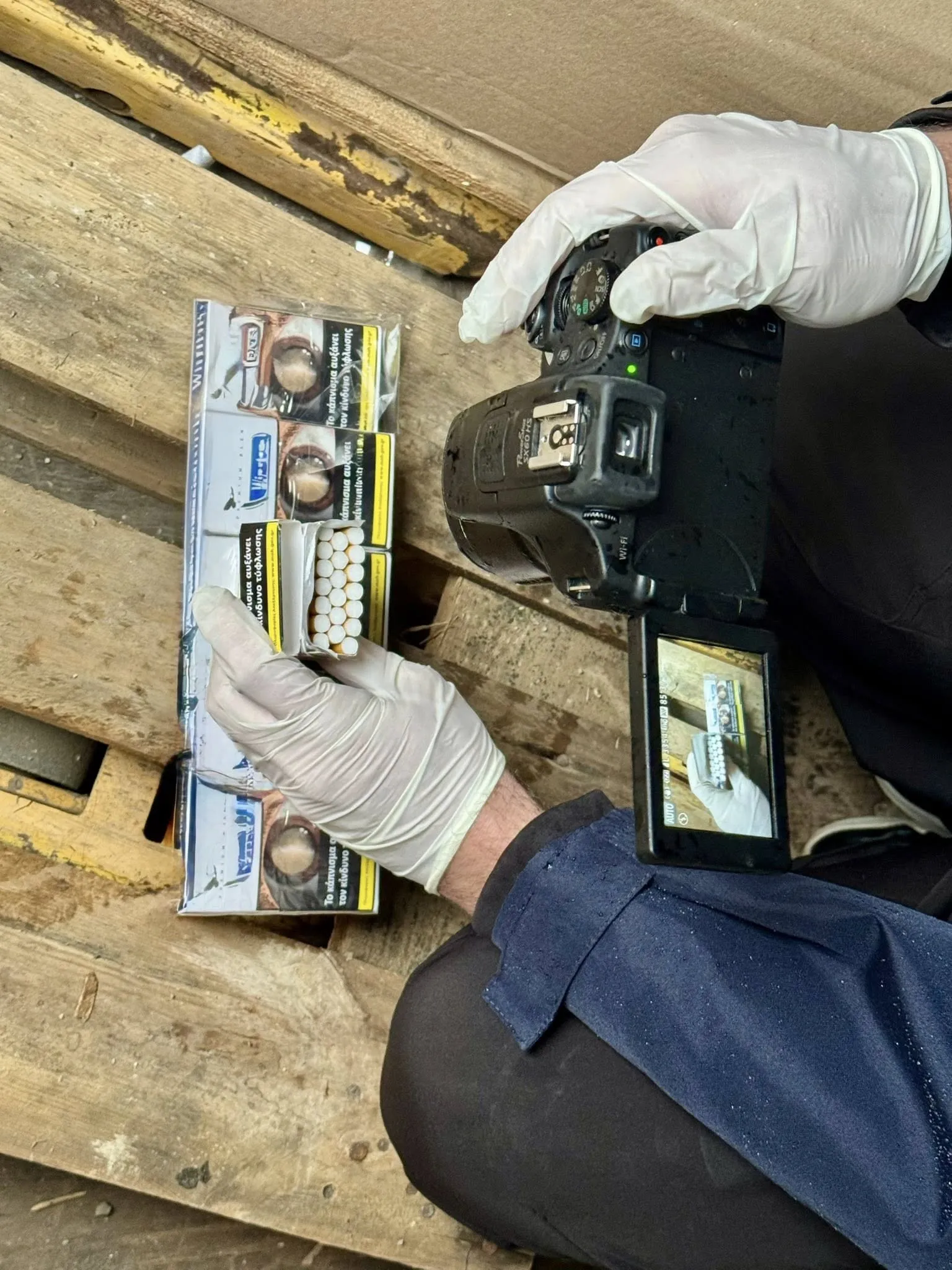 В хода на операцията служителите на реда са открили метален карго контейнер и спрян до него микробус, в които били намерени общо 190 мастербокса цигари – приблизително два милиона къса – от две различни търговски марки.