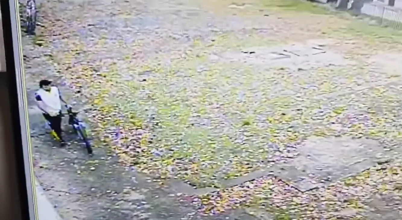 Крадецът си тръгва с велосипеда от училището, намиращо се в кв. „Орландовци“