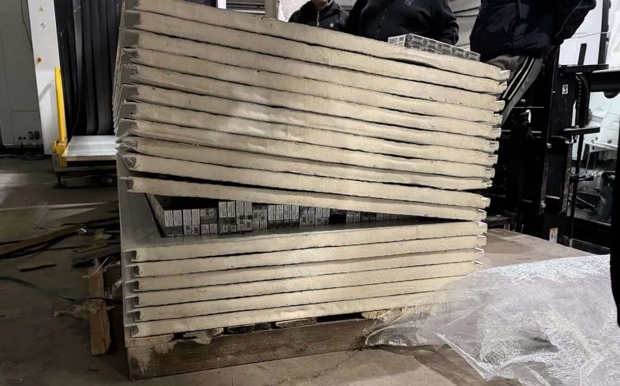 Митническите служители на Митнически пункт Лесово направиха впечатляваща акция, откривайки 711 000 къса (35 550 кутии) контрабандни цигари, скрити в изолационни термопанели на товарен автомобил с чужда регистрация.