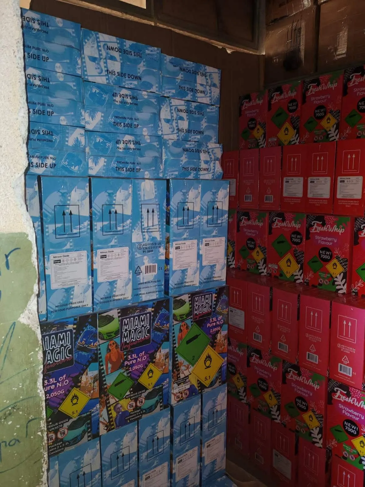 Екипи от служители на криминална и икономическа полиция при ОДМВР-Пазарджик иззеха огромно количество флакони с райски газ. По време на акцията вчера полицаите проверили складово помещение стопанисвано от 55-годишен пазарджиклия. Извършена е и проверка на паркиран пред сградата лекотоварен автомобил «Ситроен», собственост на 24-годишния му син. Така органите на реда открили общо 3294 флакона съдържащи диазотен оксид /райски газ/. Притежателят им не могъл да представи пред проверяващите необходимите документи за произхода на намереното вещество. По случая е образувана преписка.