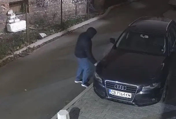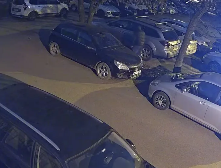 На няколко видеоклипа, заснети от охранителни камери, се вижда висок мъж с черно яке с качулка и светли дънки. Той се приближава към някои коли, като в ръцете си държи предмет, вероятно отвертка или нож. Посяга към една от гумите на „набелязаната“ машина, а после продължава по пътя си.