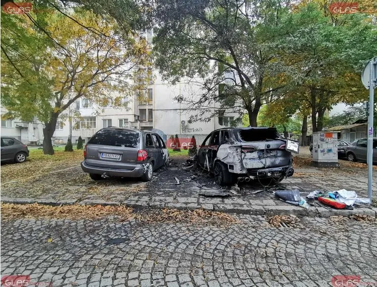 При извършения оглед е установено, че огънят е тръгнал от лек автомобил „БМВ“ и е частично обхванал паркираните наблизо „Крайслер“ и „Мерцедес“.