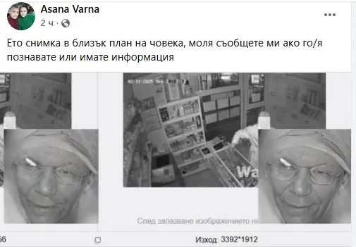 В отделна публикация Асана е споделил снимка в близък план на извършителя, вероятно обработена чрез специална програма, за да се изясни образът му.