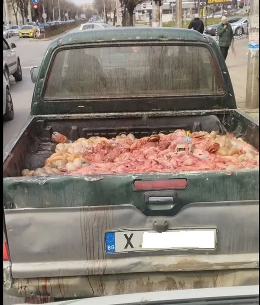 При рутинен преглед на социалните мрежи на инспекторите от ОДБХ са забелязали снимка на пикап с открита каросерия, пълна с животински вътрешности. Според автора на публикацията по време на движението от автомобила върху шосето е изтичала кръв.