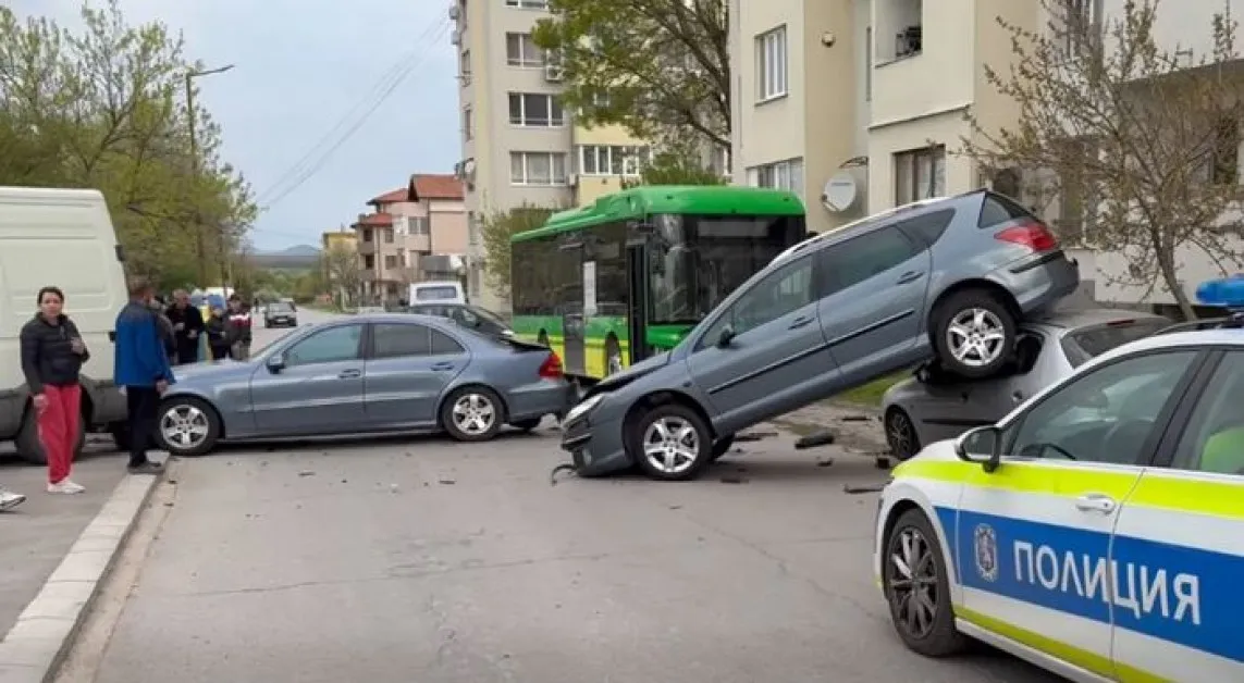 Инцидентът стана около 6:20 часа вчера на улица „Панорама" в областния град. След загуба на контрол превозното средство е навлязло в лявата лента за движение и е блъснало пет паркирани леки автомобила. По случая е образувано досъдебно производство.