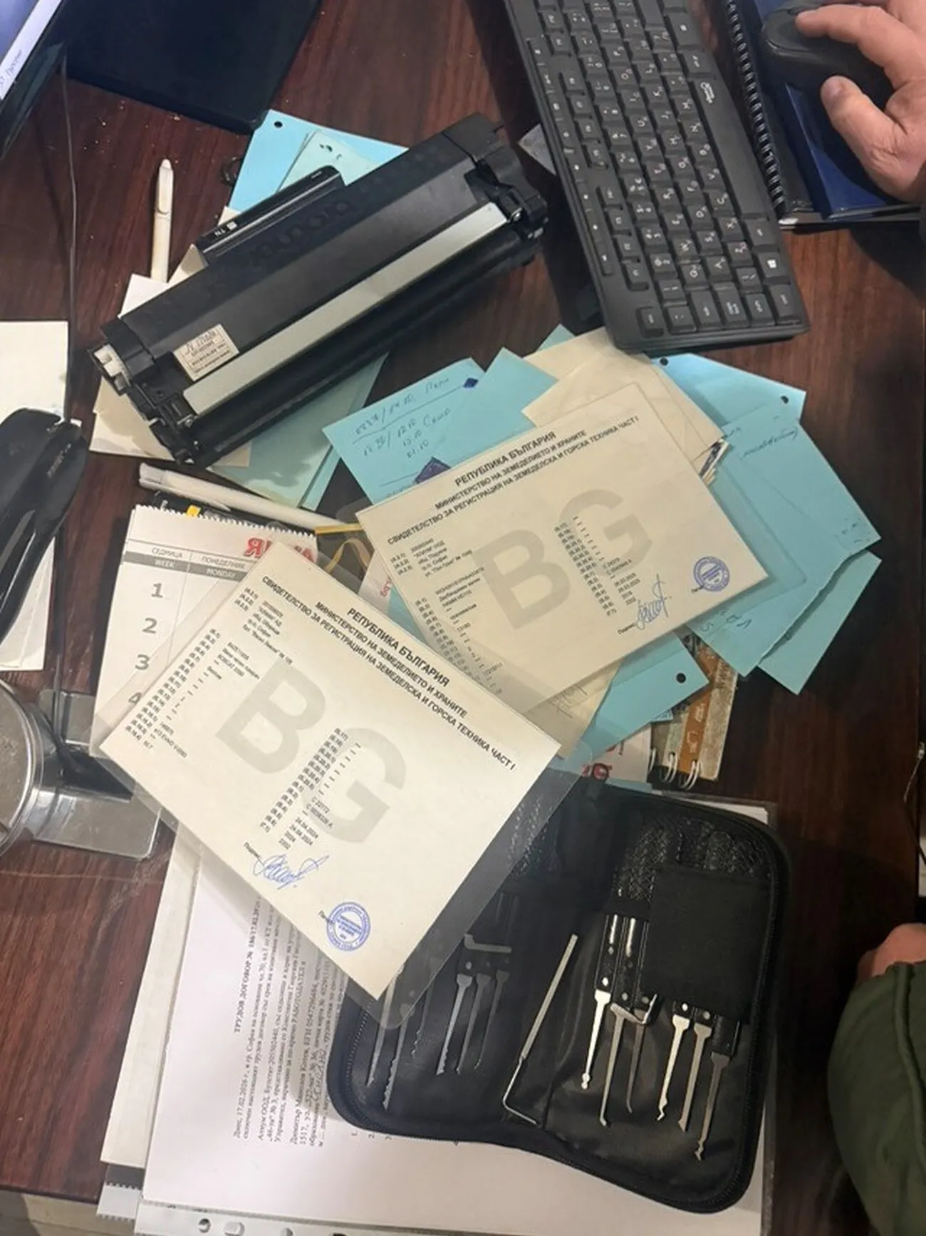 По данни на полицията при претърсвания на два адреса са открити множество доказателства – заготовки за фалшиви лични карти и задгранични паспорти, холограмни стикери, както и материали, за които се предполага, че са предназначени за изработване на неистински парични знаци, по-конкретно еврови банкноти с номинал 20 и 100 евро.