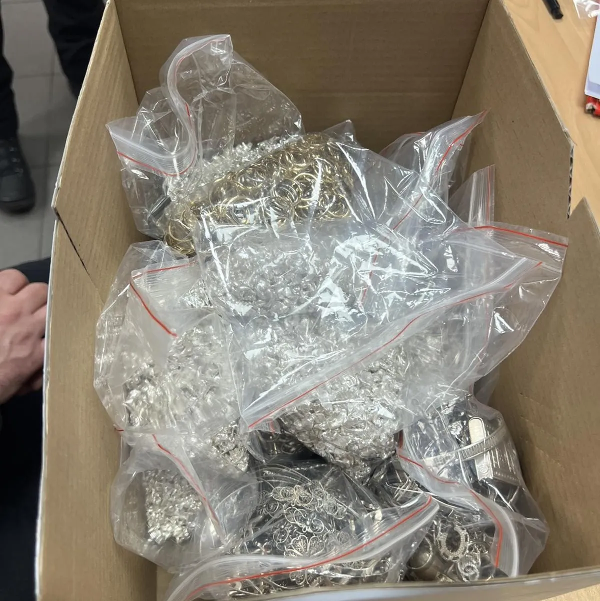 Според експертизата на вещо лице: в част от пакетите са установени 128 пръстена от 14-каратово злато с общо тегло 192 грама; в друга част – 6206 грама употребявани сребърни изделия, проба 925; както и 6794 грама сребърни гранули, проба 999.