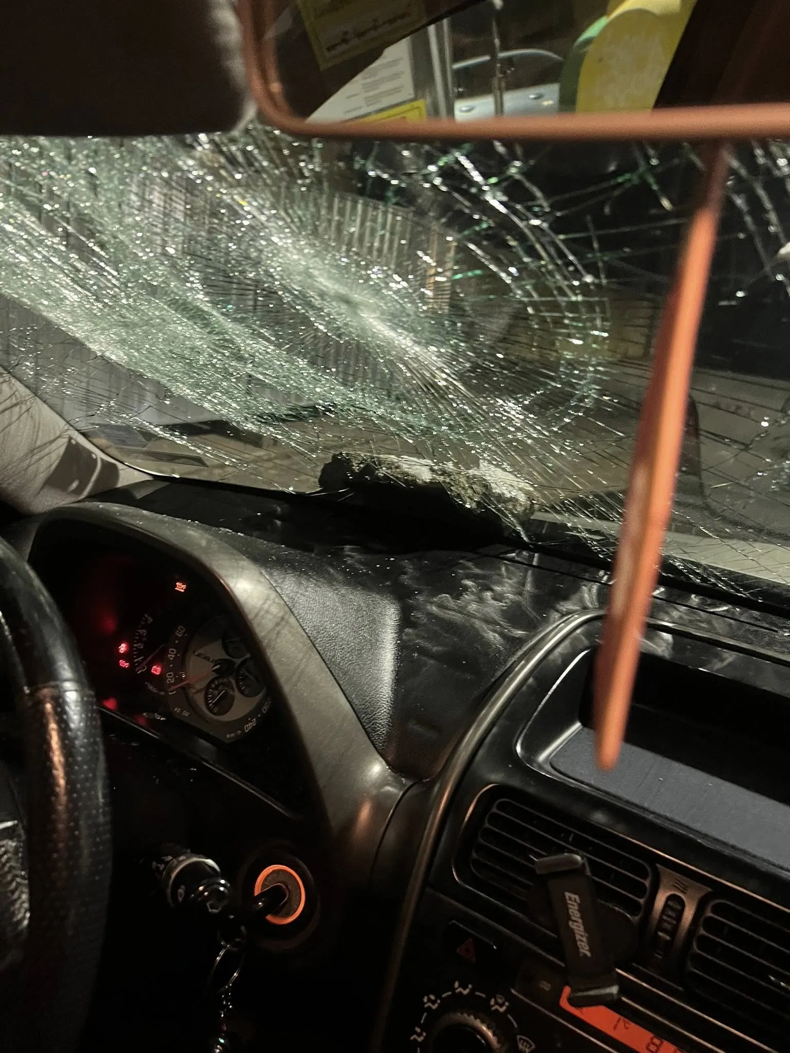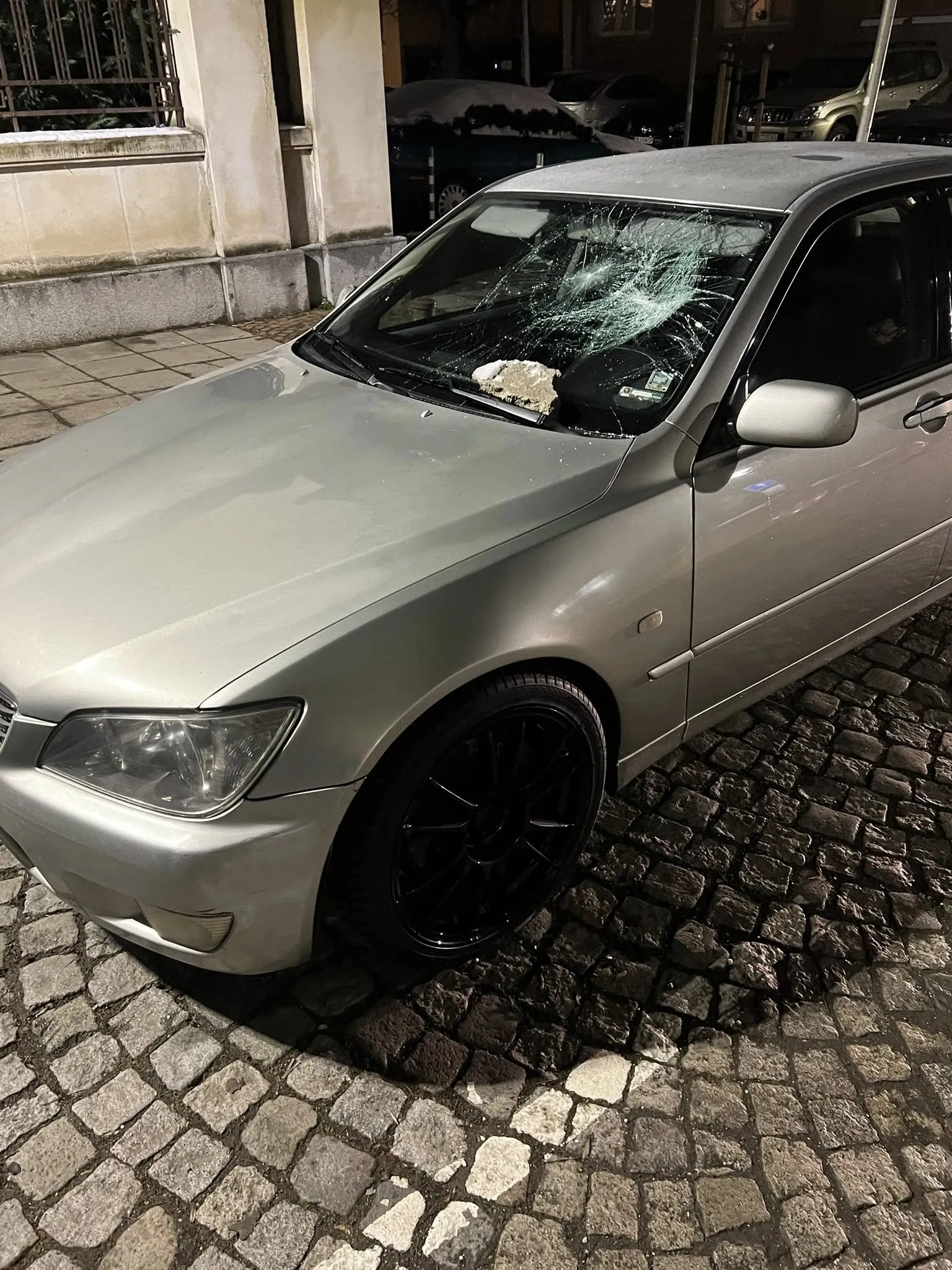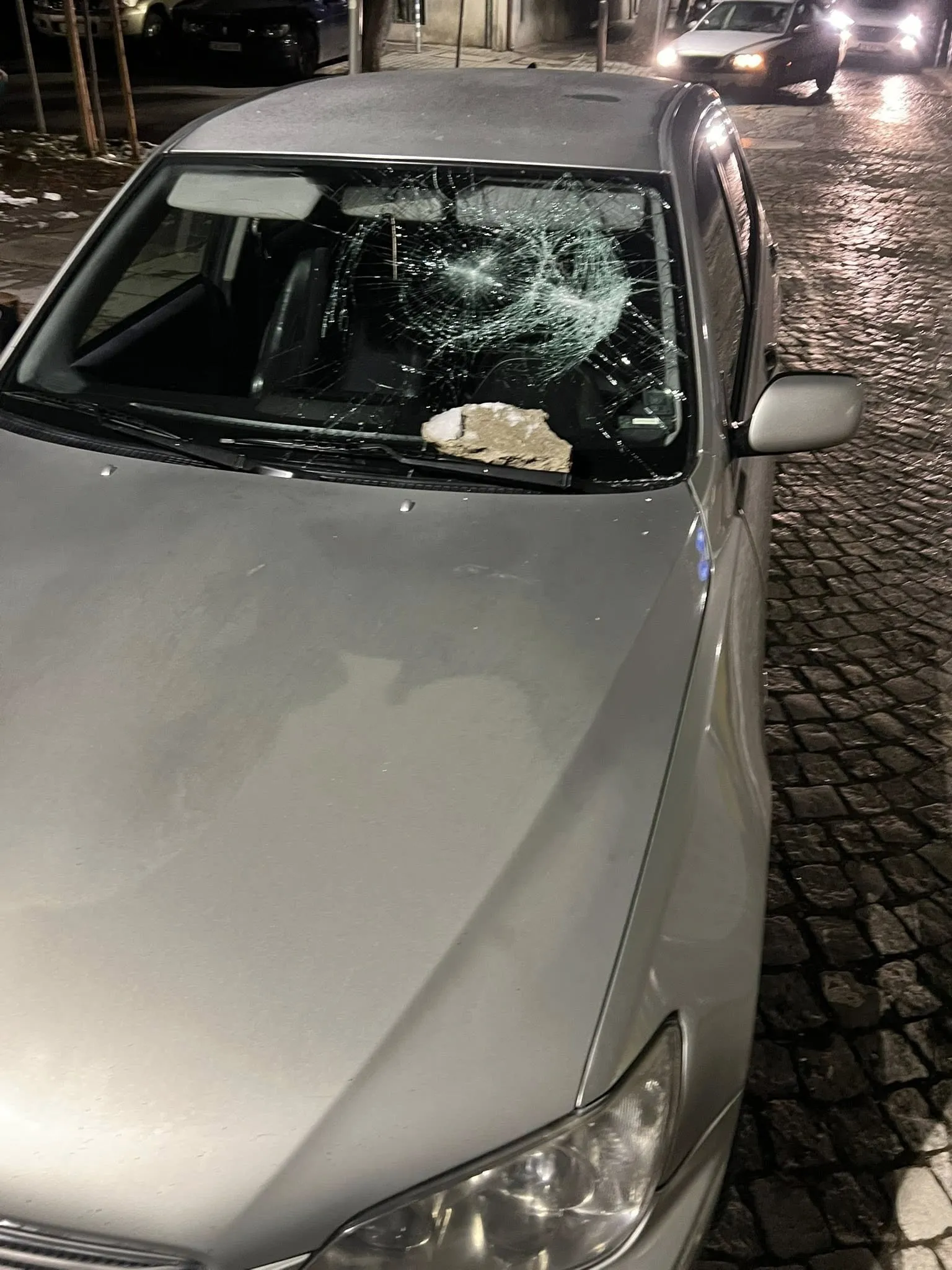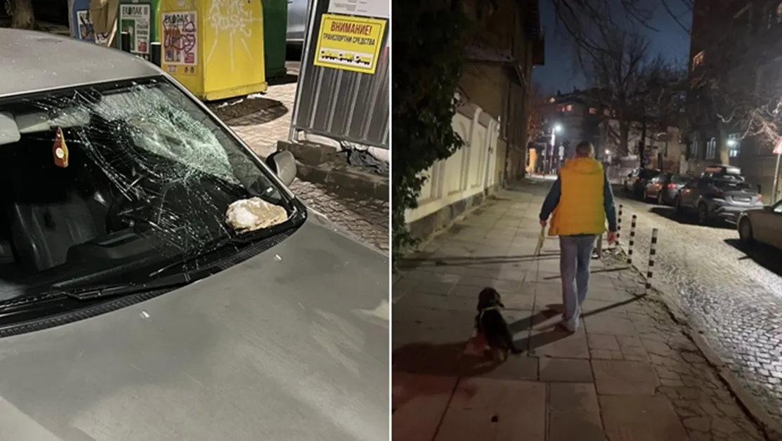 Малко по-късно мъжът се върнал и, по твърдения на Колев, ударил с камък предното стъкло на автомобила, докато той се намирал вътре. Стъклото не се счупило, но било повредено.