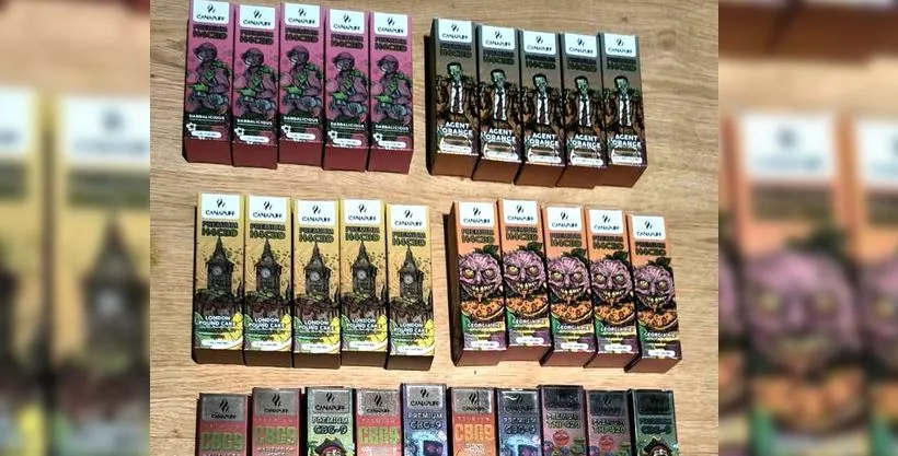При претърсване на имот, обитаван от задържания, разследващите открили 42 комплекта нагреваеми цигари за бездимно пушене, чиито течности реагирали на вид синтетичен канабиноид. Със същото съдържание били и 260 желирани бонбони, подготвени от мъжа за продажба.