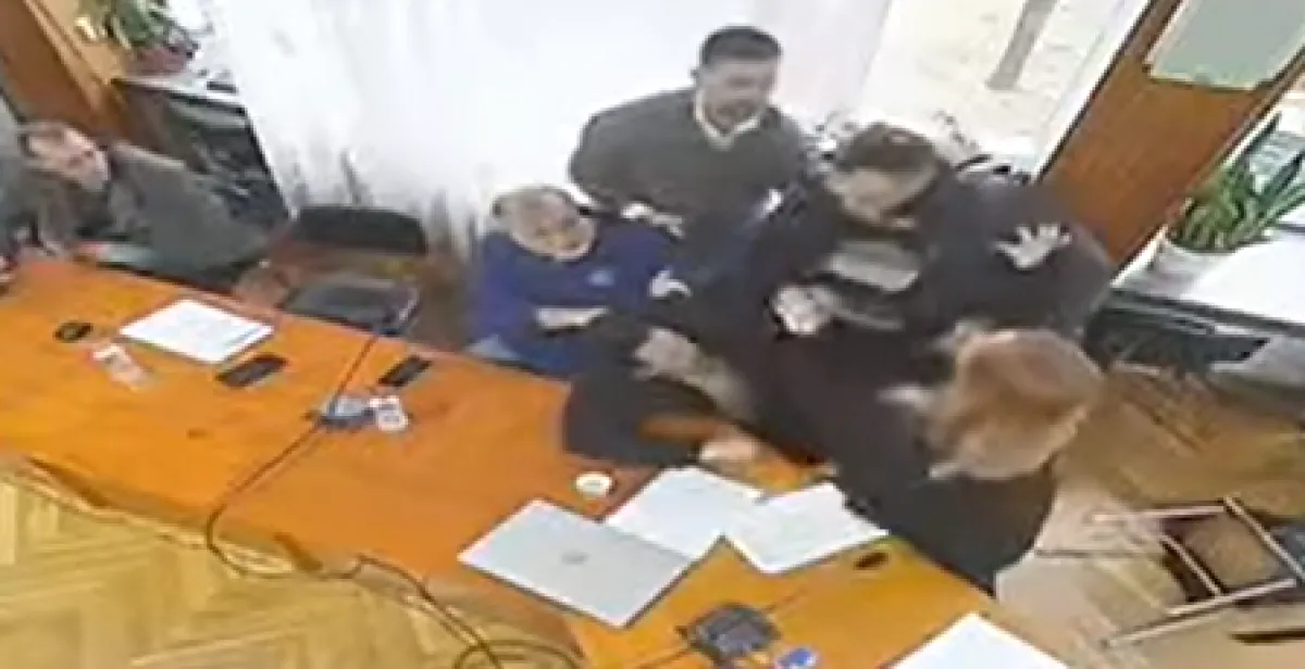 На видеозаписа от заседанието на Общинския съвет, проведено в петък вечер, се вижда как бившият кандидат за кмет на Берковица Георги Ганов напада общинския съветник от „Възраждане“ Милован Жан Панталеев, който си седи на мястото.