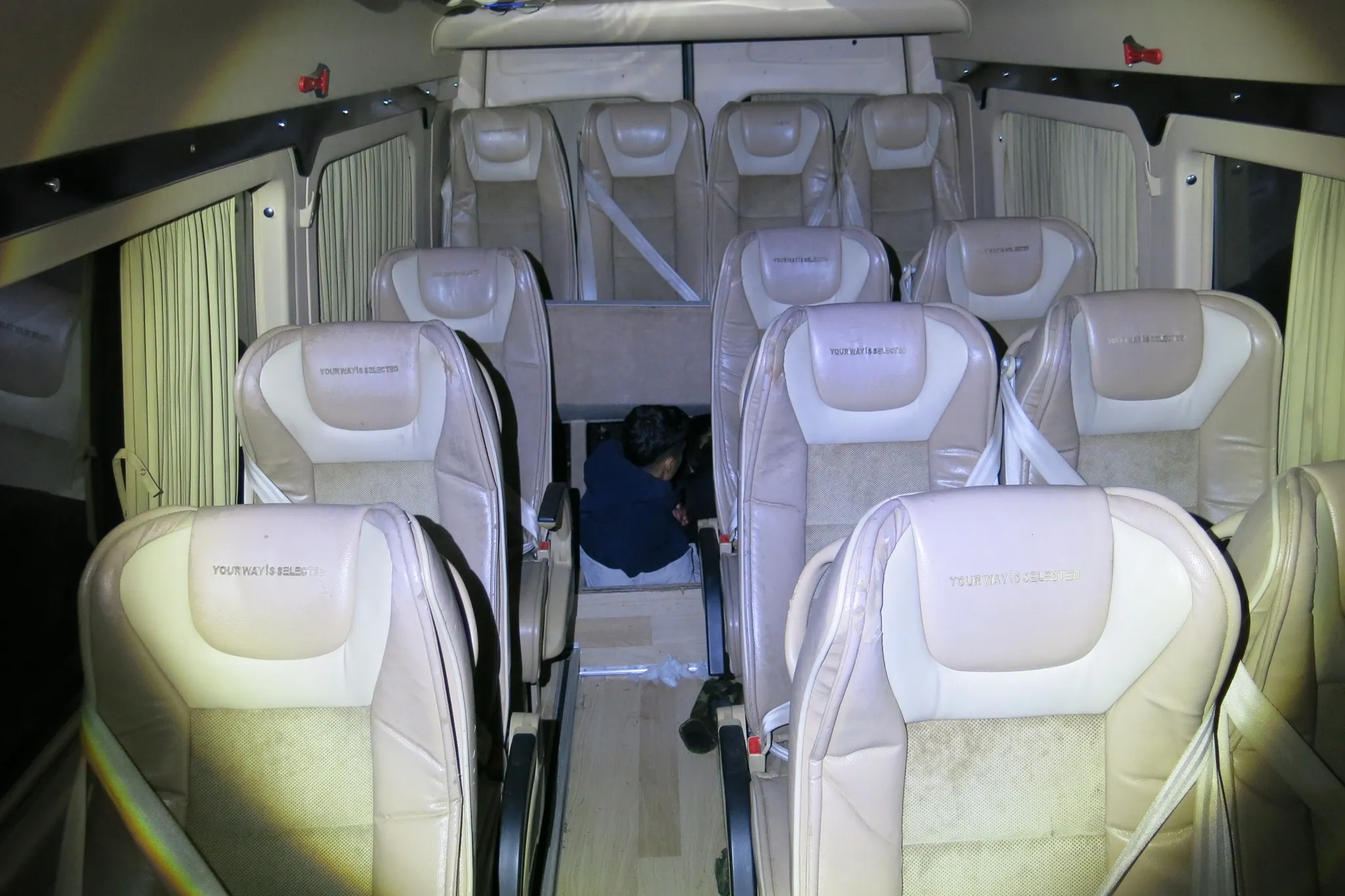 Пътническият микробус изглеждал празен, но граничните полицаи забелязали белези, които им подсказали друго. Зад седалките те открили тайник в естествена кухина на превозното средство, в който били натъпкани 10 незаконни мигранти, млади мъже.