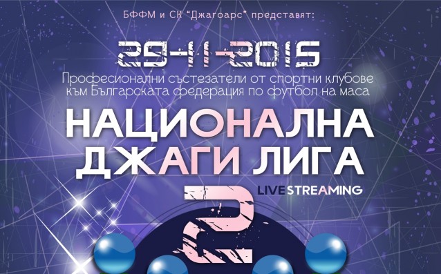 Приключи последното официално състезание по джаги за тази година у нас - Второто издание на Българската национална джаги лига. Междуклубното първенство се проведе на 29.11.2015 в клубната база на СК „Джагоарс” и определи шампионите на странта по футбол на маса. Над 70 състезатели се включиха в това елитните състезание. Шест отбора при мъжете и три отбора при жените се опитаха да спечелят купата по джаги на България. Всички показаха умения и се раздадоха на футболната маса и след многочасови битки и джага емоции новите шампиони бяха определени. При мъжете шампионската титла грабна отборът на новооткрития клуб по джаги от град Созопол - „Нинджа гларуси”. След напрегната и драматична игра, Гларусите победиха на финала отбор „Джаго 1” с резултат 7:4. Женската надпревара завърши с финал между отборите на утвърдения във времето клуб „Сторм Райдърс” и най-младия и проспериращ клуб „Джагоарс”. С категоричен резултат момичетата от „Стормс Райдърс” доказаха, че заслужават шампионската титла.