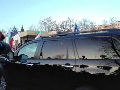 Борисов намали скоростта на автомобила, когато преминаваше край хората, но не спря и влезе в лагера. След като желязната врата се затвори, хората отново започнаха да ръкопляскат.