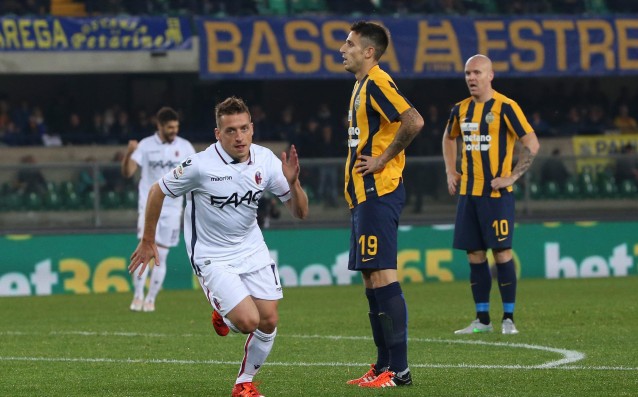 Възходът на Болоня след идването на Роберто Донадони очевидно тече с пълна сила. „Хрътките“ постигнаха втора поредан победа под ръководството на бившия национал, като този път сразиха Верона далеч от дума с 2:0 в 12-ия кръг на Серия А. Преди идването на Донадони „рособлу“ бяха спечелили едва 6 точки в 10-те си мача, а само за две срещи специалистът успя да удвои техния актив. Не бива се пропуска и факта, че те гостуаха на единствия тим в калчото без победа от началото на кампанията. Реално срещата беше решена още в първия си четвърт час, когато паднаха и головете за Болоня. Резултатът откри бившият футболист на Ювентус Емануеле Джакерини, като му бяха необходими едва 6 минути игра. Ключово за гола бе включването на левия краен бранител Адам Масина в атака, понеже мароканецът центрира перфектно около точката на дузпата, където опитният италианец с красиво воле прати топката неспасяемо в далечния ъгъл. Осем минути по-късно гостите удвоиха след хубав пробив на Матиа Дестро отляво. Нападателят получи на фланга и тръгна към аутлинията, за да прати остър пас към точката на дузпата. Няколко футболисти от двата тима се разминаха с кълбото, преди Донса да го засече с диагонален шут във вратата. До края на първата част Верона имаше едничък шанс поне да намали, но Хуан Гомес не можа да преодолее Антонио Миранте въпреки мощния си шут по гредата. Противно на на очакванията домакините не успяха да осъществят по-сериозен натиск след паузата, а в самия край на мача Болоня пропусна три чисти положения за гол. На два пъти Сафир Тайдер се озоваваше на чисти позоции, като особено в 88-ата минута той бе очи в очи с Рафаел, който обаче показа светкавични рефлекни. В продължението пък опитният Матео Бриги направи страхотен пропуск, като почти от упор намери начин да стреля над гредата. Така с 12 точки Болоня изплува на 16-ото място във временното класиране и преди изиграването на останалите срещи остава на 2 пред Фрозиноне, който е първият тим под чертата. Верона пък твърдо мина на последното място, макар „скаглиерите“ и Карпи да имат по 6 точки в актива си.