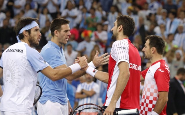 Марин Чилич и Иван Додиг победиха аржентинците Хуан Мартин дел Потро и Леонардо Майер със 7:6 (2), 7:6 (4), 6:3 и дадоха аванс на Хърватия с 2:1 във финала за Купа Дейвис- неофициално световно отборно първенство по тенис за мъже. Хърватите доминираха сериозно в тайбрека на първите два сета, като Додиг направи няколко впечатляващи удара във важни моменти, а Чилич се прояви като отличен на началния удар. Решителният момент в срещата на двойки беше в 6-ия гейм на третия сет, когато при сервис на Майер хърватите направиха пробив. Това стана след като самият той изпрати топката в мрежата след форхенд с две ръце, а преди това в разиграването отнонво беше допуснал грешки. В синглите Чилич победи Федерико Делбонис, а Дел Потро се наложи над Иво Карлович за единствената победа на аржентинците до момента. Балканците се нуждаят от една победа утре при следващите сингли, за да триумфират за втори път в Купа Дейвис. Аржентинците до момента имат четири загубени финала и се стремят към първата си титла. /БТА Коментирай