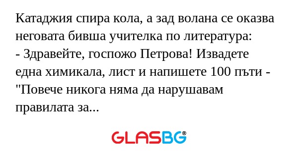 Катаджия спира кола, а зад волана се оказва неговата бивша учителка по литература: